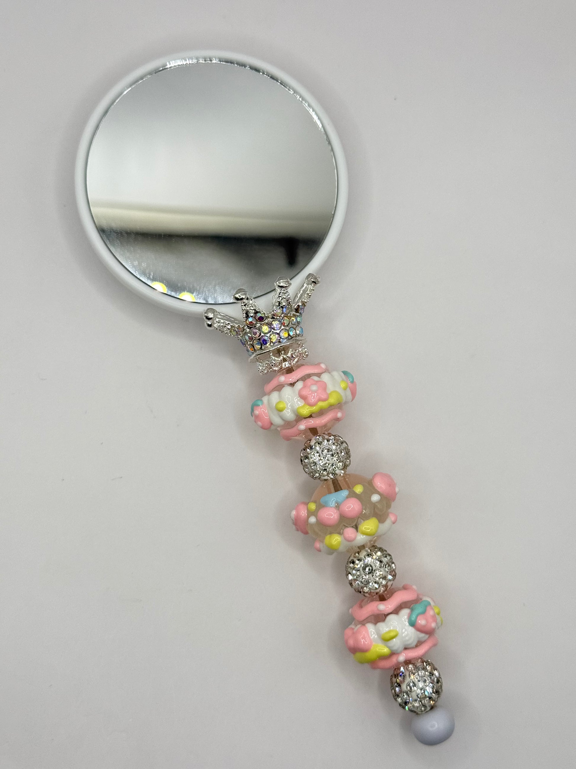 The Macaron Beaded Mirror combines functionality with aesthetic appeal, featuring hand-painted macaron beads that add a touch of charm to your bag or grooming space. This mirror enhances your daily routine by providing a portable reflection solution while serving as a decorative accessory.